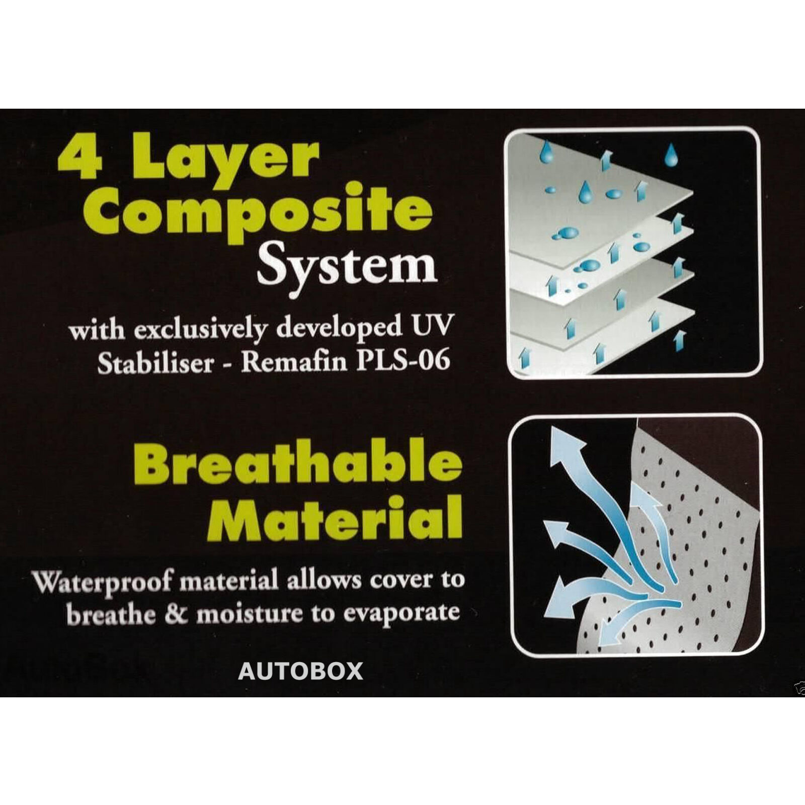 • The waterproof 4-layer material allows the cover to breathe and moisture to evaporate.
